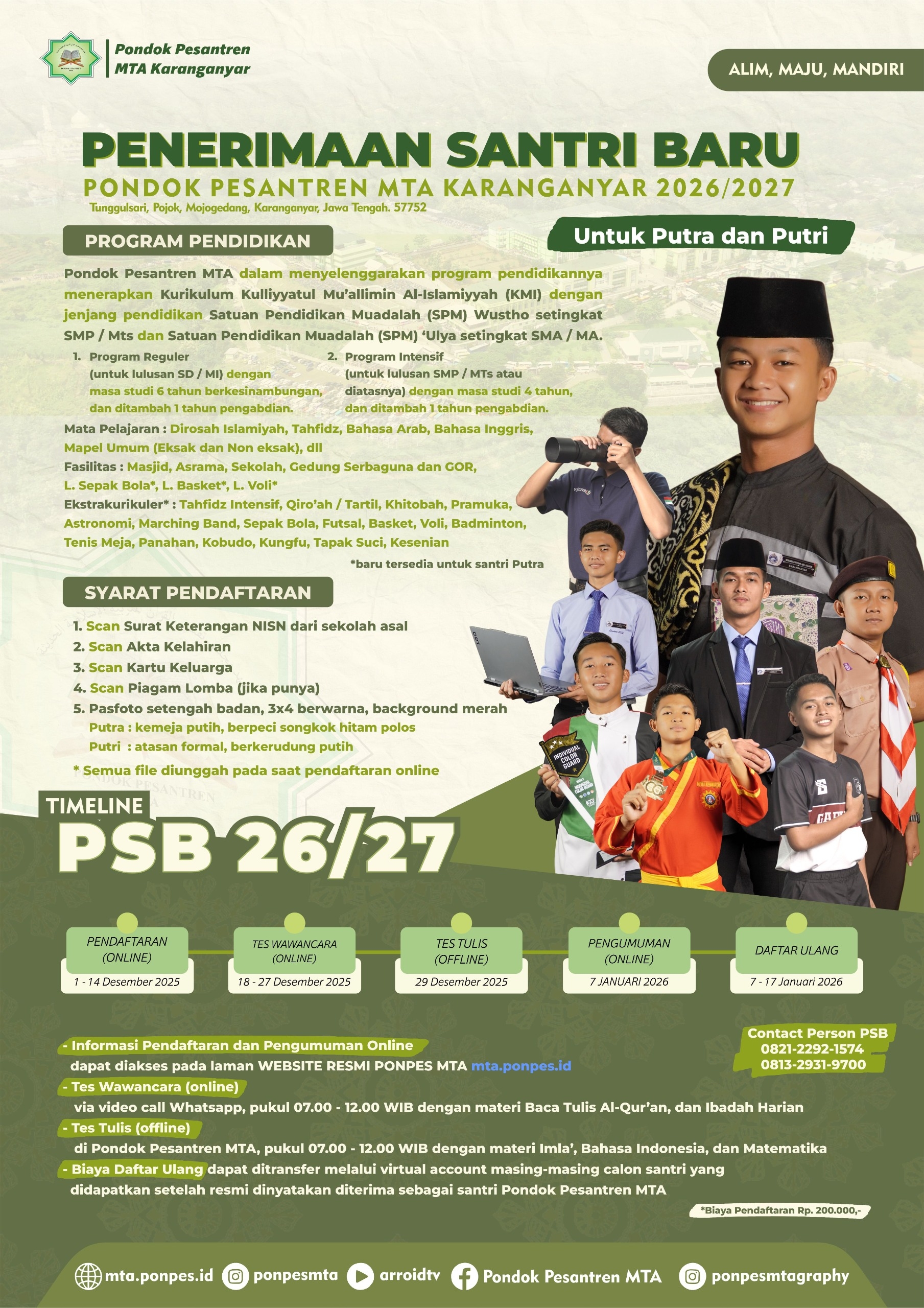 Pondok Pesantren MTA Buka Pendaftaran Santri Baru Tahun Ajaran 2026/2027